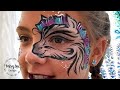 This little zebra never disappoints, and after years of painting it I still get excited every time a kid picks this design. It fits so comfortably on the face and I love the pop of color. Try different colors and stripe patterns to give each zebra its own personality!